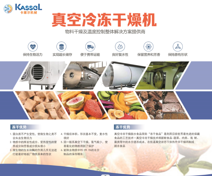 卡塞爾機械(浙江)有限公司為卡塞爾集團(tuán)成員企業(yè),是一家專業(yè)提供真空冷凍干燥設(shè)備整體方案的供應(yīng)商:以“凍干機”為核心產(chǎn)品,形成了針對果蔬、肉類(寵物食品)、速溶方便食品(凍干粉)、美容及生物制品、實驗室凍干、家用凍干及其它等七大凍干產(chǎn)品生產(chǎn)線的針對性解決方案,讓低成本、高效率、多用途的一站式凍干服務(wù)成為可能。